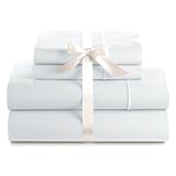 600 Thread Count Single-Ply, Luxury (100% Cotton Composition) Non-Sateen (No Silky Feel) Bed Sheets Set, Deep Pocket (Fits up to 16") Queen Size in Ivory