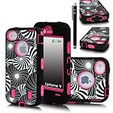 E-LV Unique Stylish Design Hard Soft High Impact Hybrid Armor Defender Case Combo for Apple iPhone 4 4S 4G 4th Generation with Free Front and Back Screen Protector, 1 Black Stylus and E-LV Microfiber Digital Cleaner (iPhone 4, Flower)