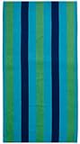 Cotton Craft - Terry Beach Towel 30x60 - 2 Pack - Cabana Stripe Navy Green Turquoise - 400 grams 100% Pure Ringspun Cotton - Brilliant intense vibrant colors - Highly absorbent easy care machine wash - Use for picnic poolside or as a colorful bath towel