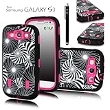 E-LV Stylish Design Hard Soft High Impact Hybrid Armor Defender Case Combo for Samsung Galaxy S3 i9300 with 1 Free Clear Screen Protector, 1 Black Stylus and E-LV Microfiber Digital Cleaner (Flower, Samsung Galaxy S3)