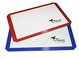Silicone Baking Mat Set 2pk, FREE Recipe Book and Videos, Professional Grade and Certified FDA safe, Half-Sheet Large Pastry Mat, - Easy Cleanup, Freezer and Oven Safe. Red and Blue Kid-Friendly Colors - Lifetime Money-back Guarantee